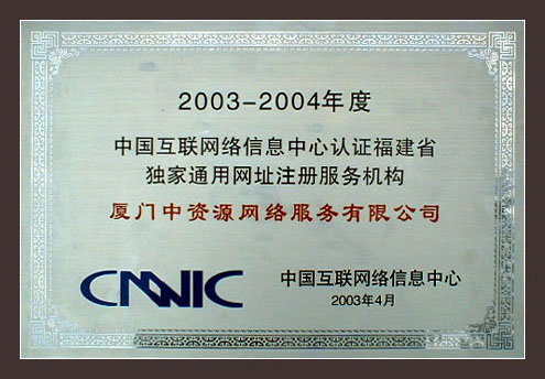2004年度CNNIC認(rèn)證通用網(wǎng)址注冊(cè)服務(wù)機(jī)構(gòu)