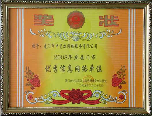 2008年度廈門市優(yōu)秀信息網(wǎng)絡(luò)單位